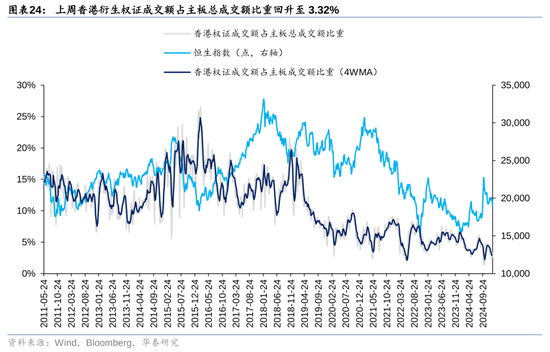 受圣诞假期影响,上周香港繁衍权证成交额大幅回升至51.06亿港元(vs前一周32.04亿港元),占主板总成交额比重亦回升至3.32%(vs前一周2.43%)。