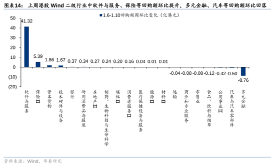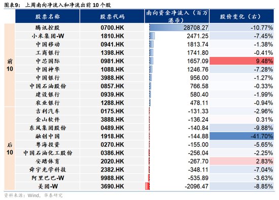 个股维度,回购额前10的个股为腾讯控股/盟国保障/安踏体育/汇丰控股/小米集团-W/快手-W/期间电气/石药集团/新瑰丽/中远海控。
