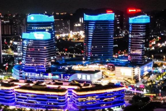 亚洲最大、功能最强的邮轮空洞体之一,贸易空洞体中交邮轮·城悦寰宇,涵盖了风海荟KTV、印象澳门、衡宴湖南土菜、庆幸海东南亚菜、辣木汤养生粤菜、海边小厨、船主咖啡、YABOO超燃乐玩寰宇等文娱体验、餐饮,可近距离感受邮轮魔力。
