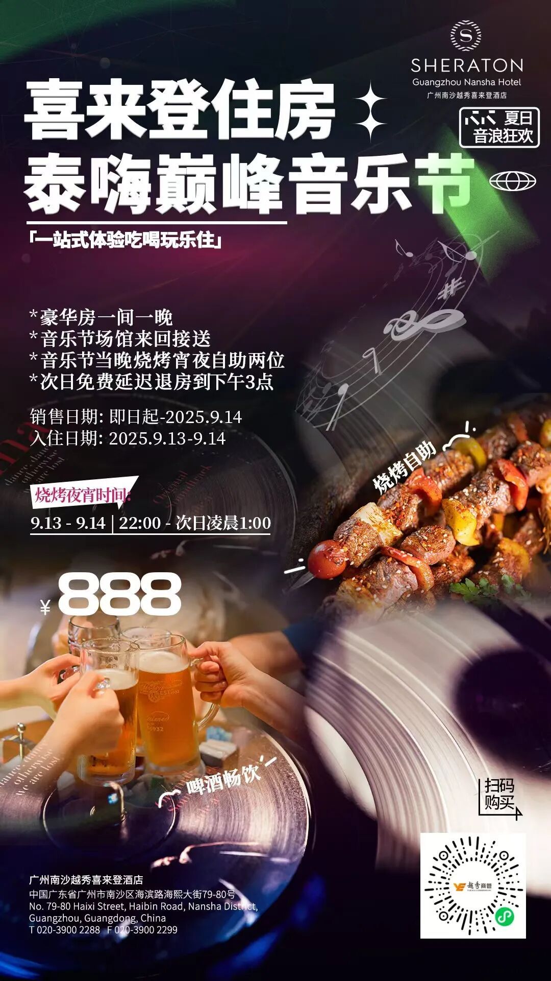 请联系020-84681888转预订部预约房间,联系时出示音乐节门票可享受优惠价