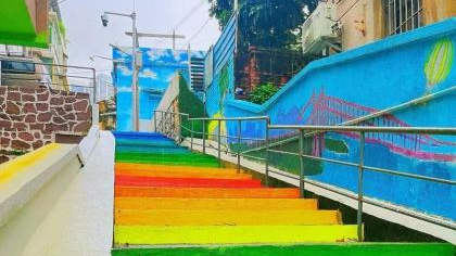南北台村被称为 “彩虹村”,是一个突出具有童话气味的村落,蓝色、紫色等神采互相搭配和碰撞让东说念主认为颜色有一种迥殊的魔力,仿佛踏入漫画中的缤纷寰宇:通往天空的彩虹路线、五彩墙面的涂鸦艺术、阳光透过树影散落的斑驳光斑。突出允洽游玩拍照打卡,距离4号线南沙客运港站约2公里。